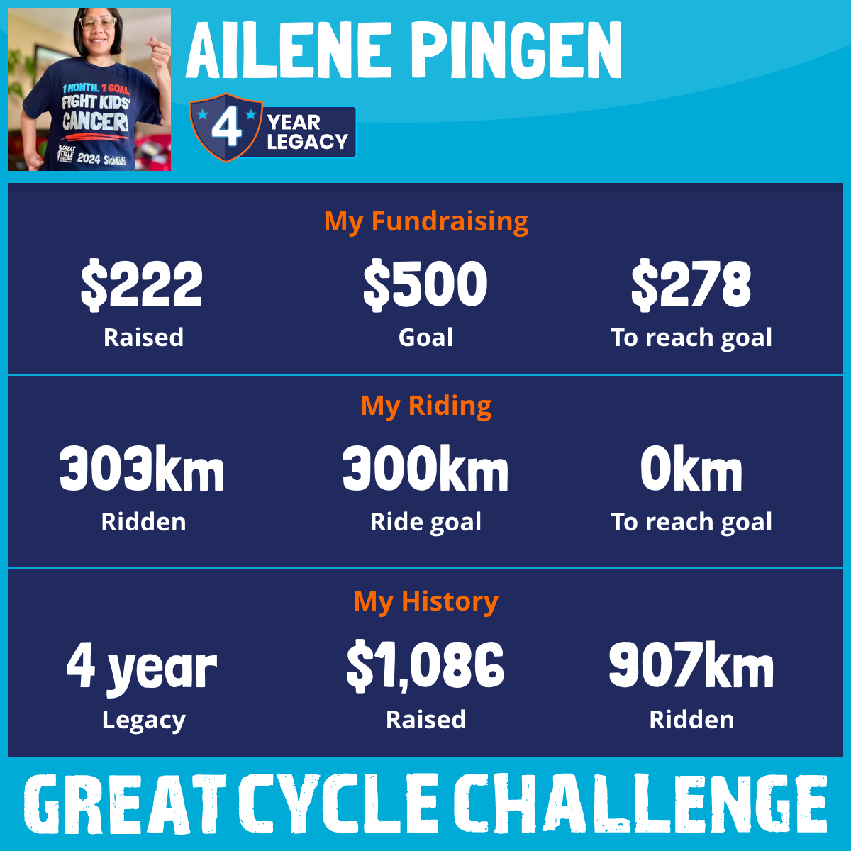 I am riding 300 km in memory of Gerlyn Cuerdo. Please sponsor me and support my challenge to fight kids' cancer and save little lives.