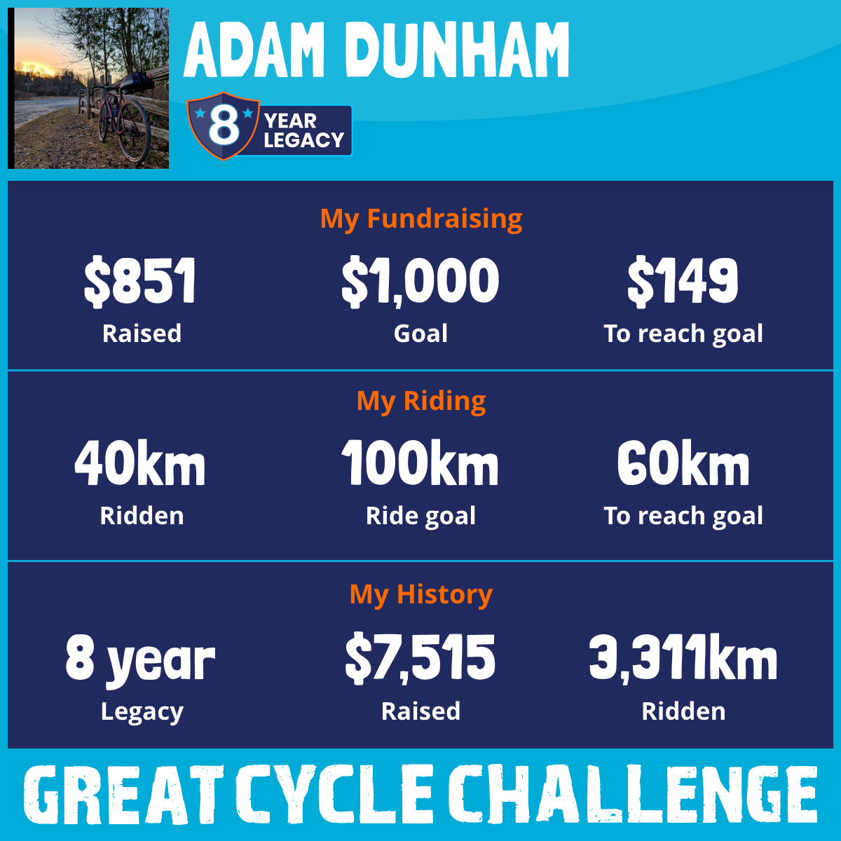 539 km Ridden$1,040 Raised2023