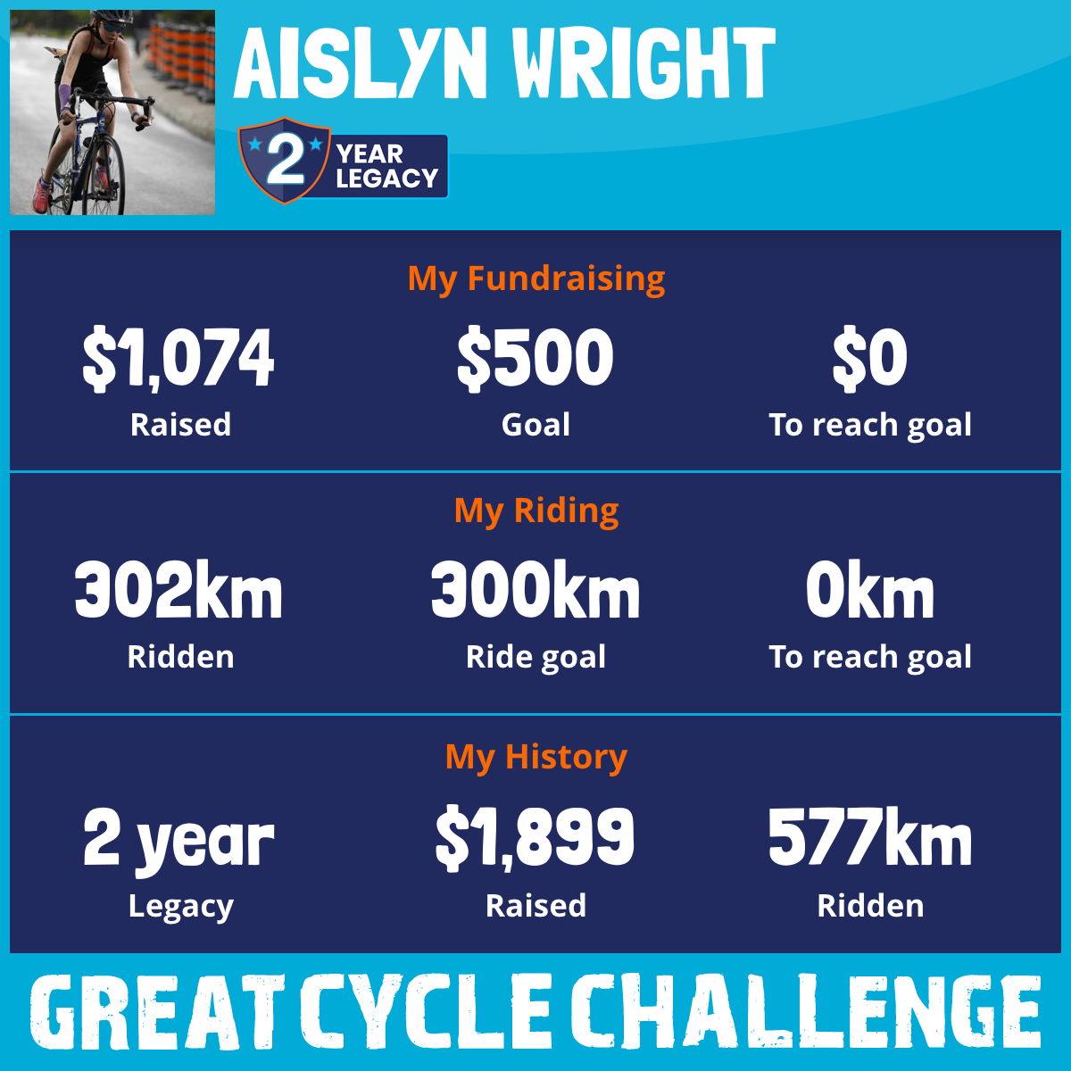 302 km Ridden$1,074 Raised2025