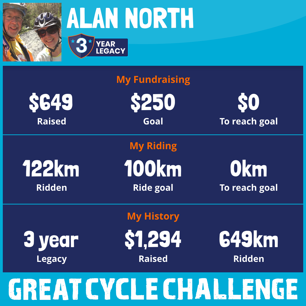 122 km Ridden$649 Raised2025