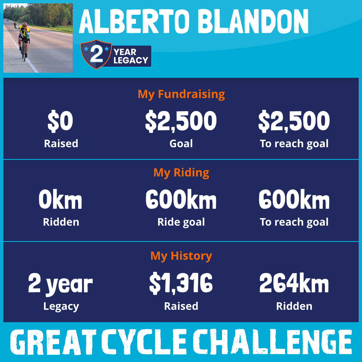 264 km Ridden$1,316 Raised2025