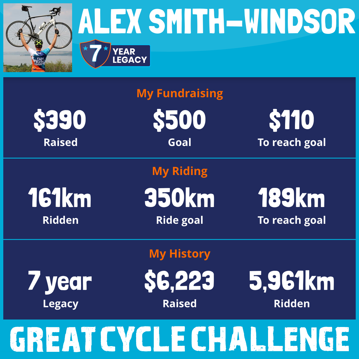 This August, I am taking part in the Great Cycle Challenge to fight kids' cancer!