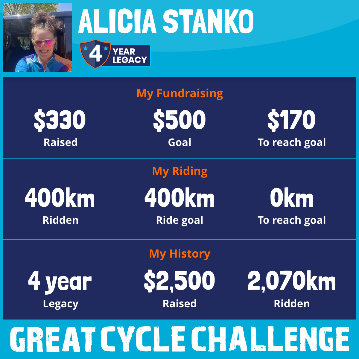 400 km Ridden$330 Raised2025