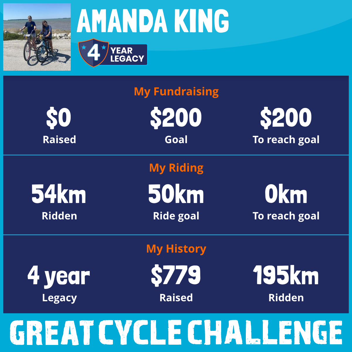 I am riding 50 km in memory of Addison Hill and Mark Parkinson. Please sponsor me and support my challenge to fight kids' cancer and save little lives.
