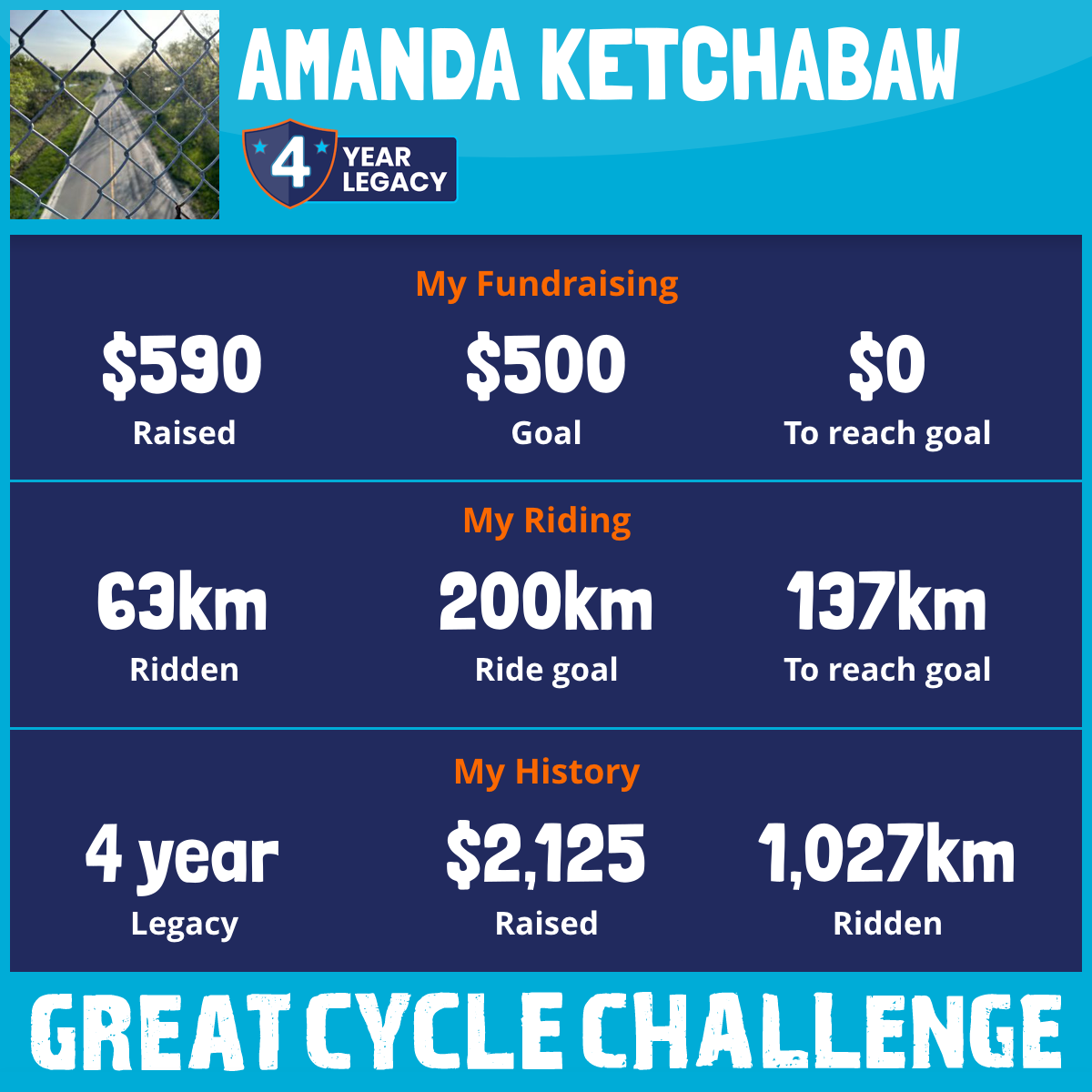 63 km Ridden$590 Raised2025