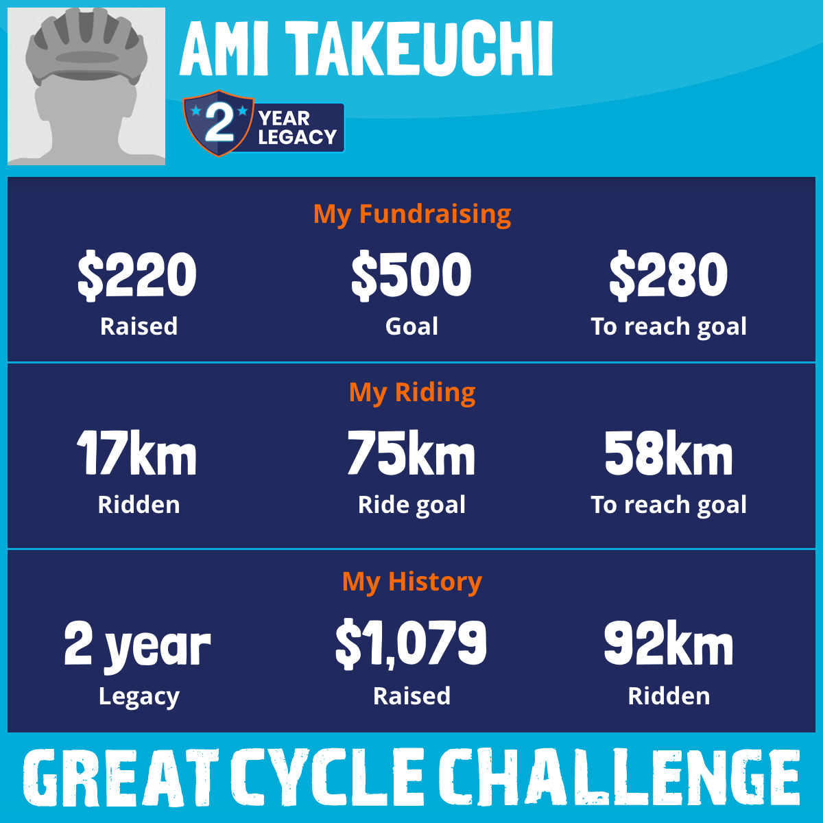 17 km Ridden$220 Raised2025