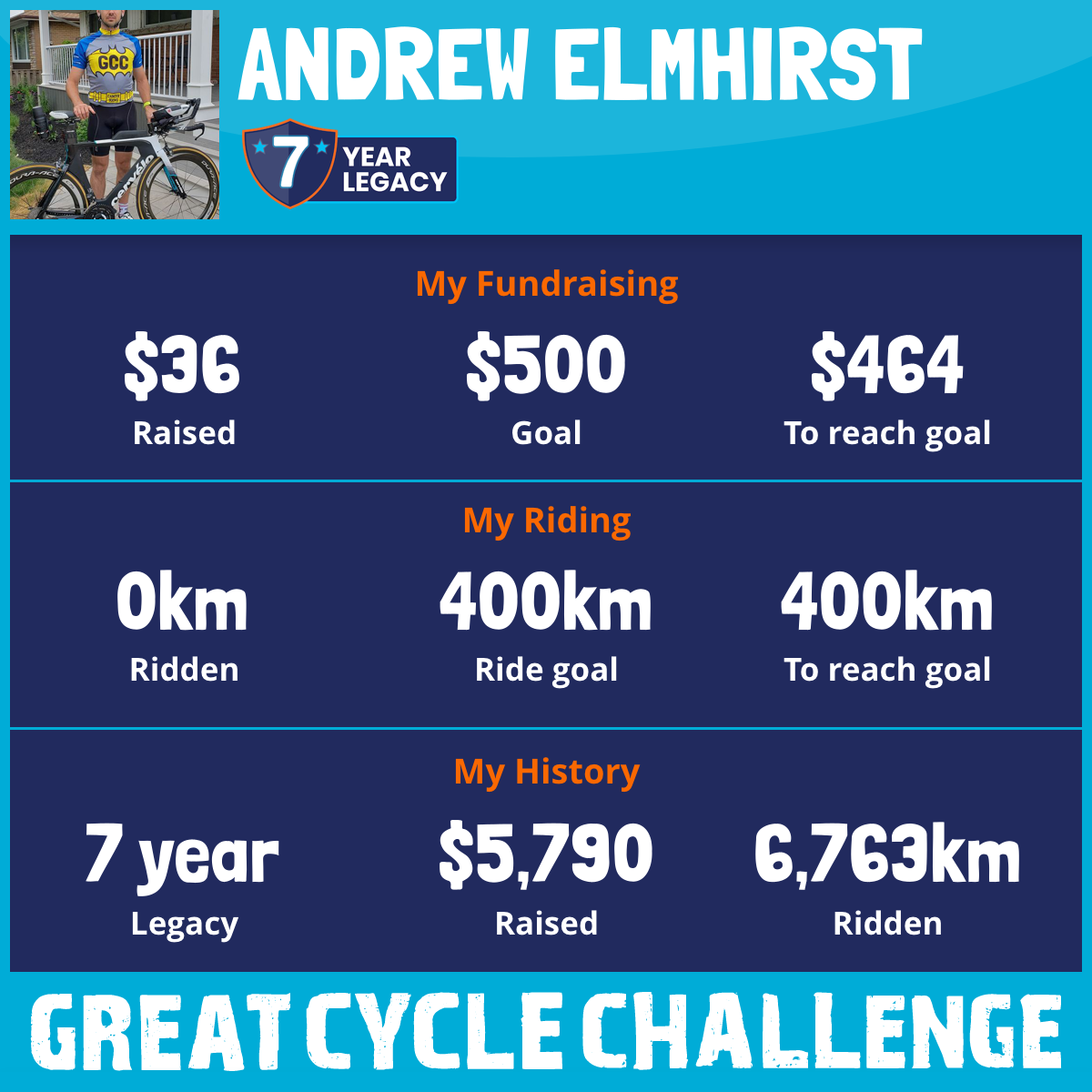 2,411 km Ridden$1,888 Raised2022