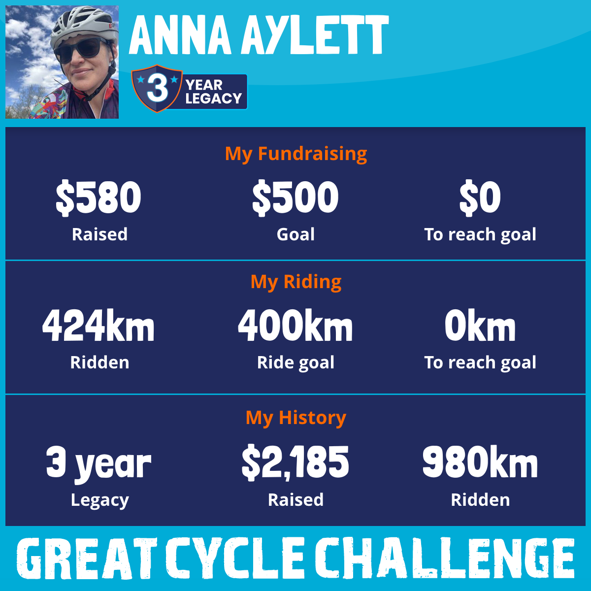 424 km Ridden$580 Raised2025
