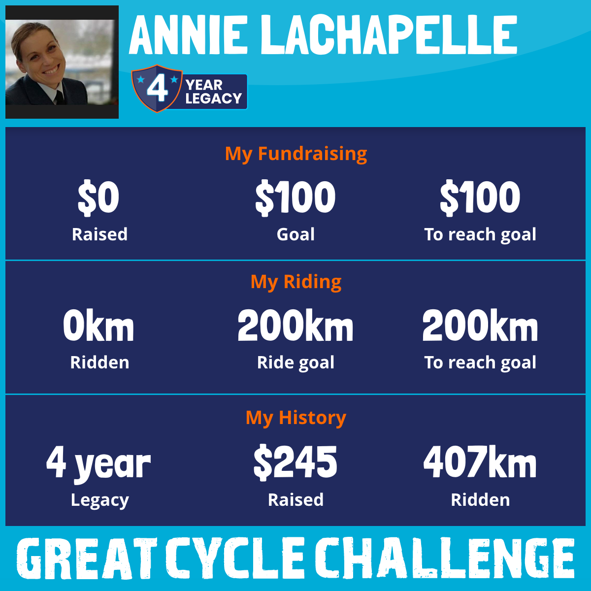407 km Ridden$245 Raised2020