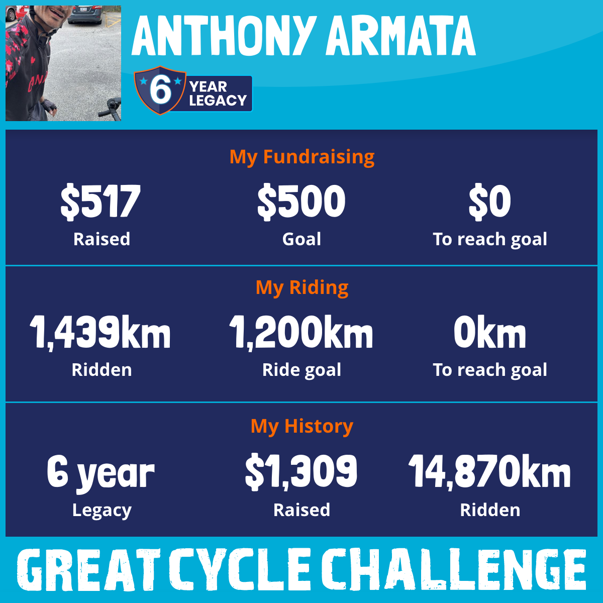 3,074 km Ridden$492 Raised2023