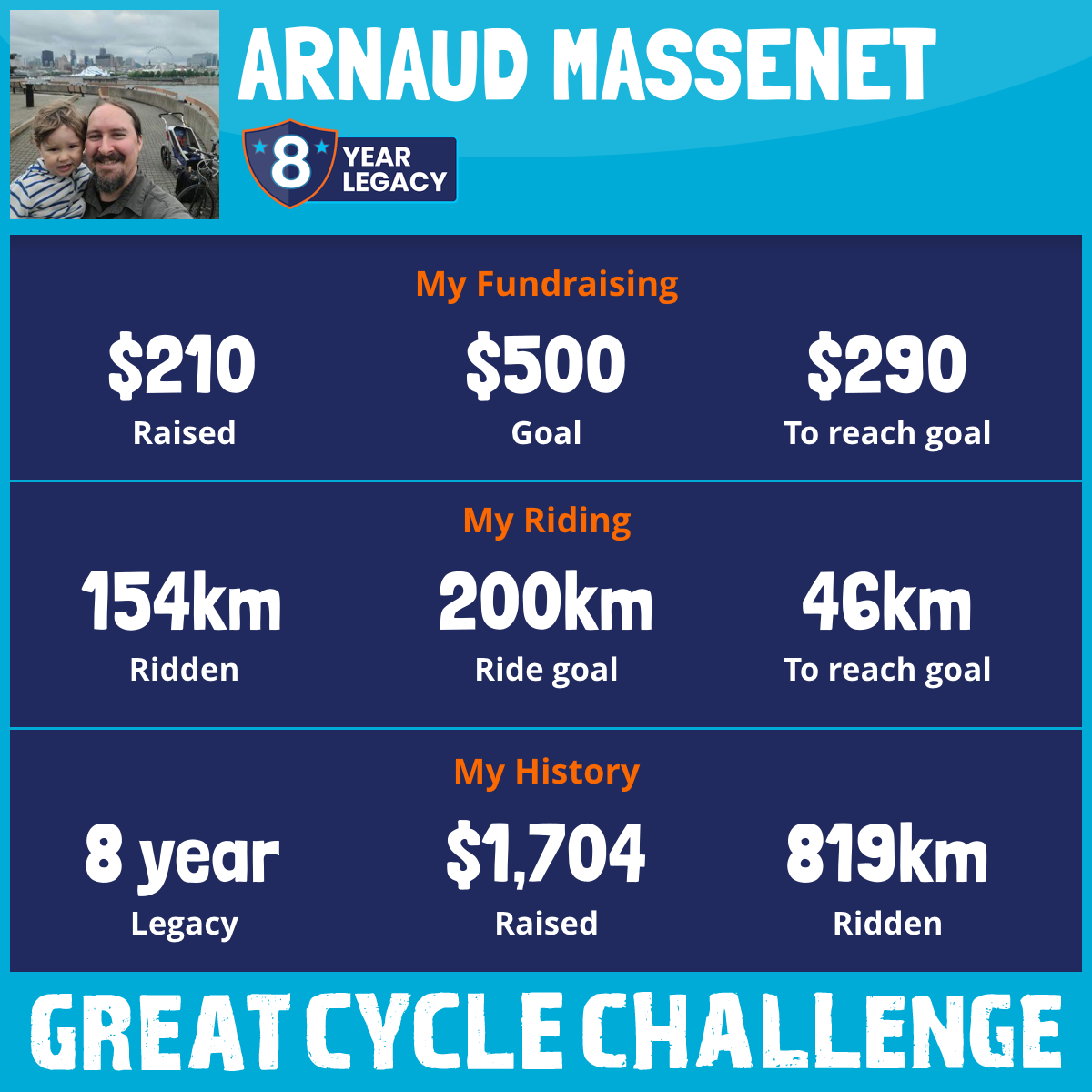 I am riding 200 km for Bruno. Please sponsor me and support my challenge to fight kids' cancer and save little lives.