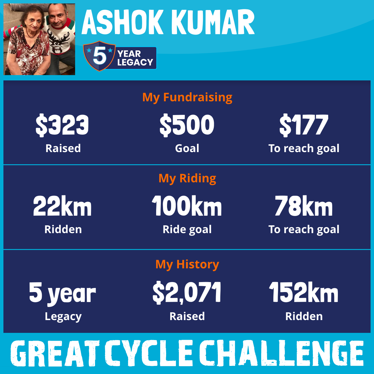 I am riding 100 km in memory of Mom and all those that are battling cancer. Please sponsor me and support my challenge to fight kids' cancer and save little lives.
