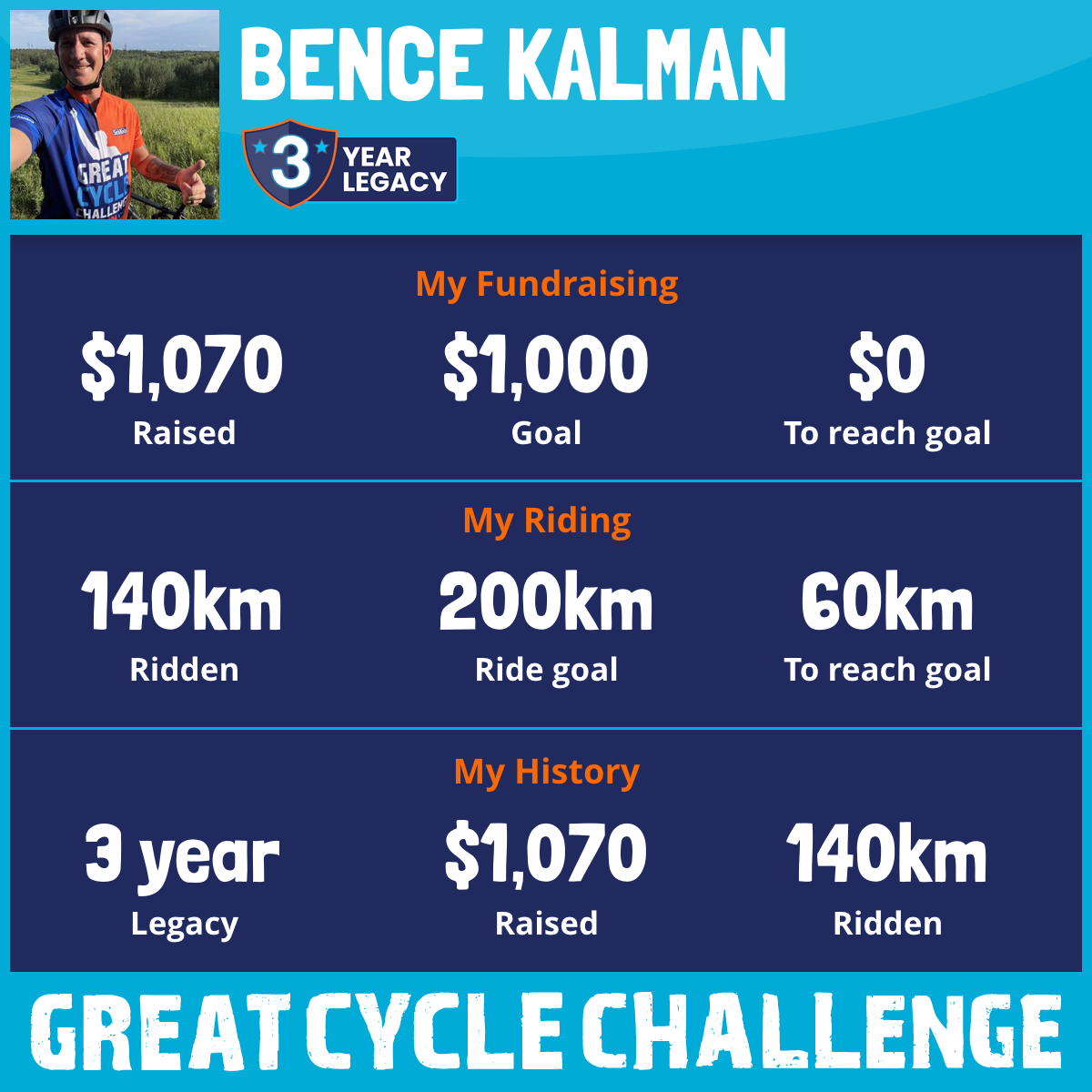 180 km Ridden$1,070 Raised2025