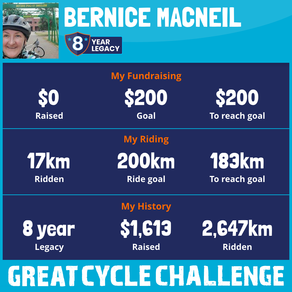 I am riding 200 km in memory of Zac Connolly David MacNeil Ronnie McNeil George Wheeliker Tanya Grant Brent Wheeliker. Please sponsor me and support my challenge to fight kids' cancer and save little lives.