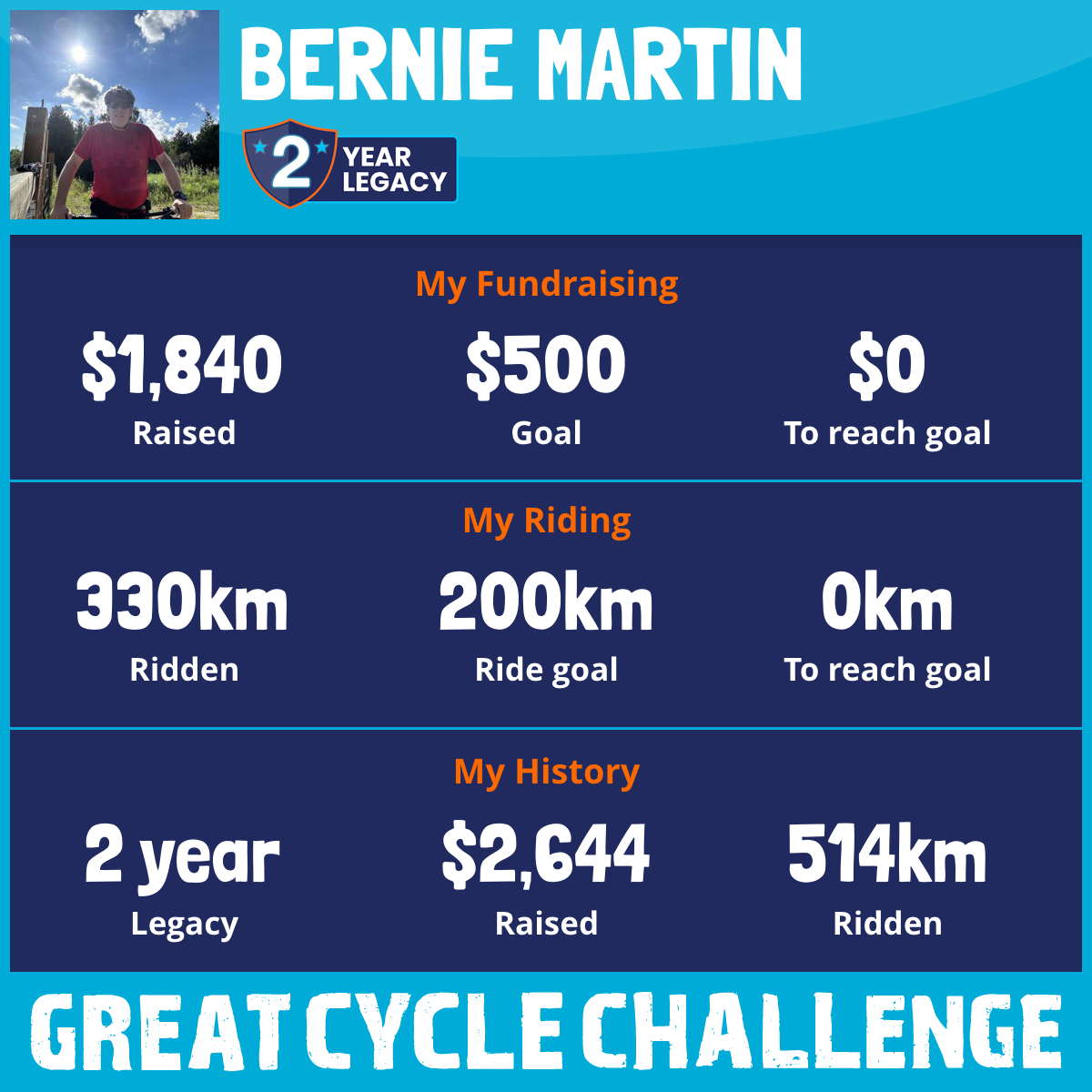 330 km Ridden$1,840 Raised2025