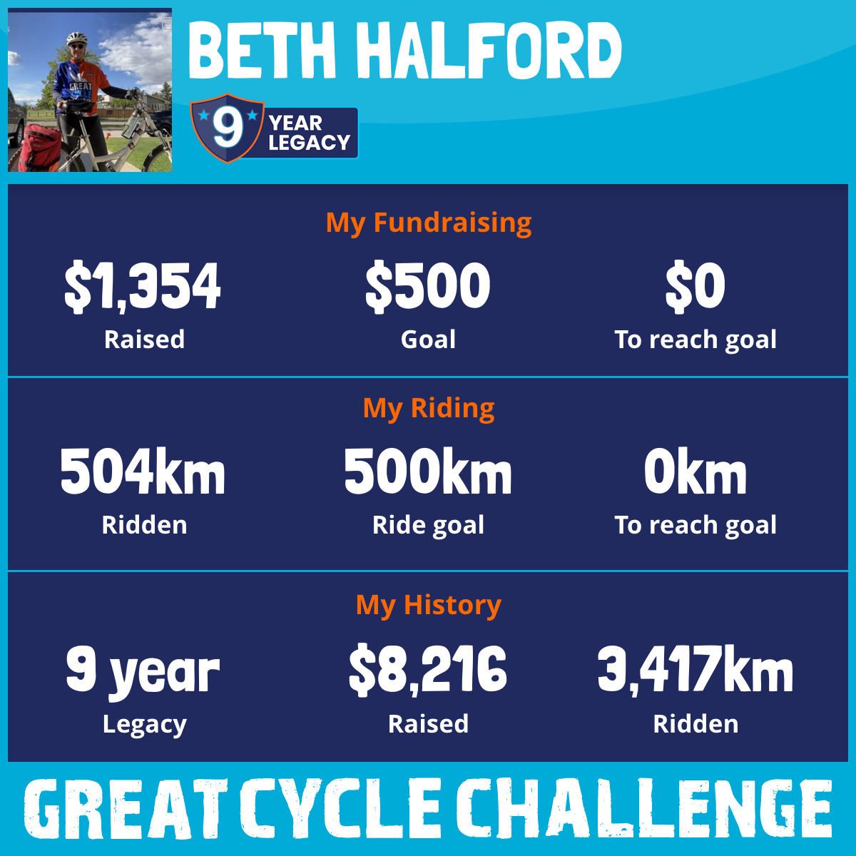 507 km Ridden$1,349 Raised2023