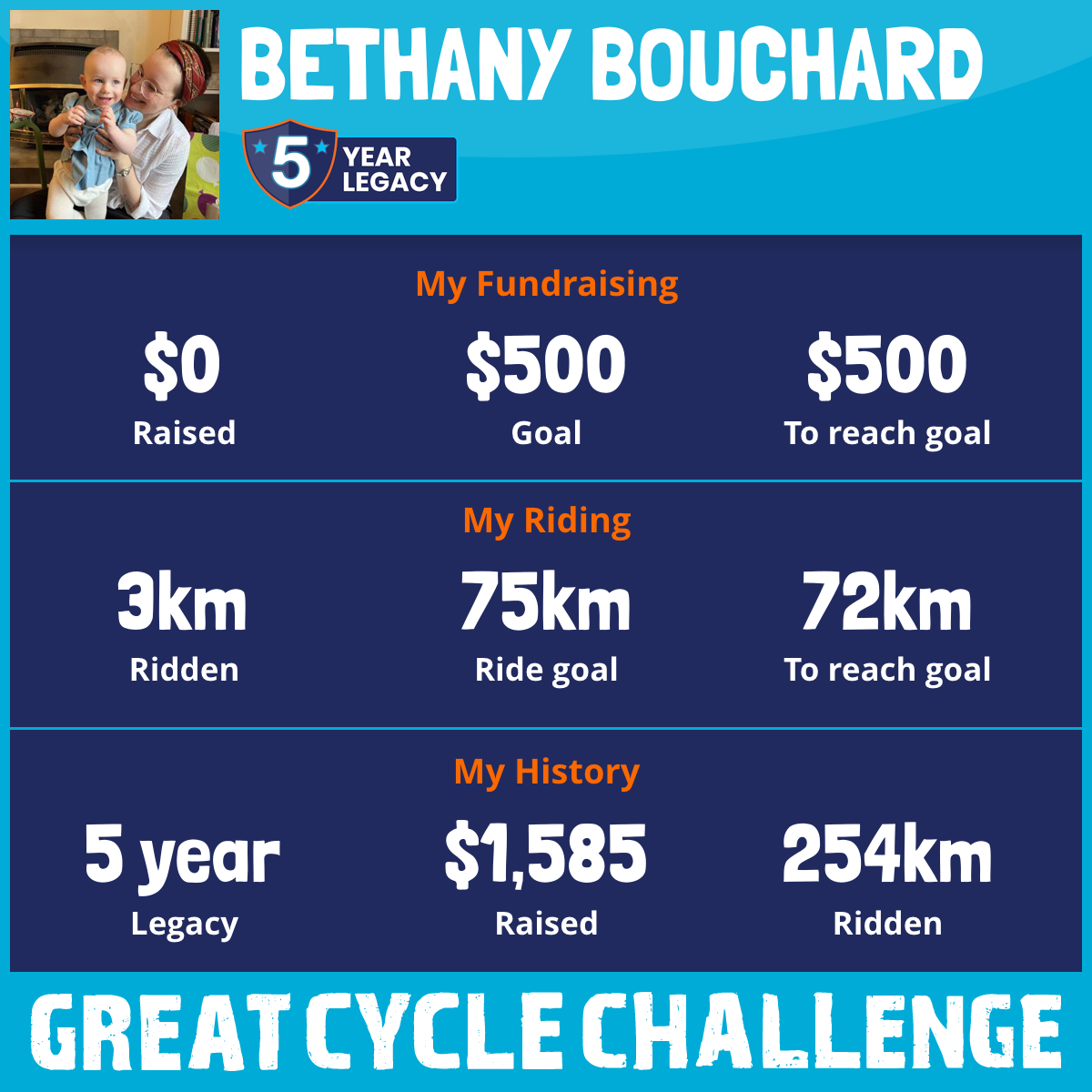 As a survivor of childhood cancer, I grew up not knowing if I’d live long enough to experience adulthood, let alone parenthood. Today, I ride for my daughter, who I was blessed to have against all odds. I ride in memory of my dear friend Kimmy, who passed away just before we were to begin post-secondary with our friends. And I ride for every brave child I met as a camper at Camp Oochigeas, whose strength and spirit have stayed with me.