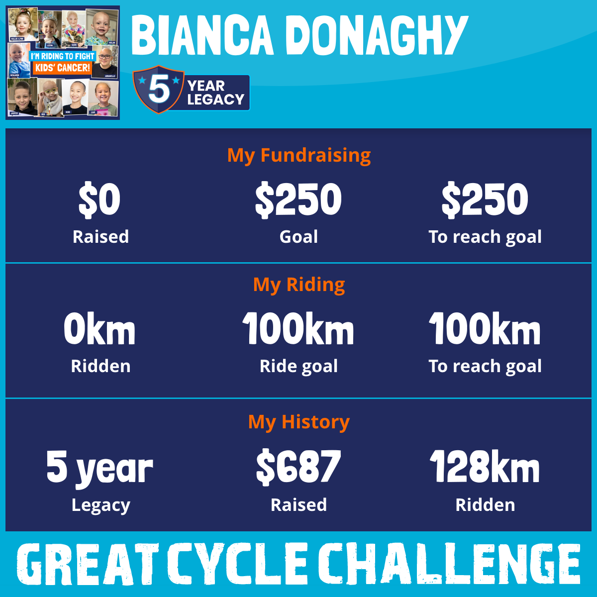 This August, I am taking part in the Great Cycle Challenge to fight kids' cancer!