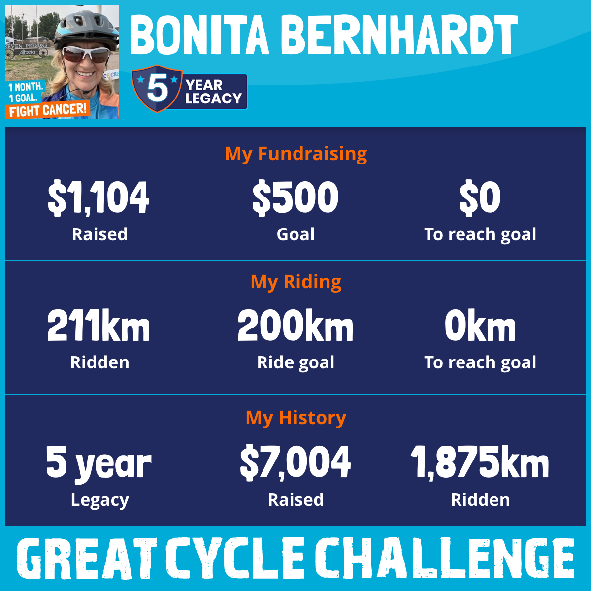 211 km Ridden$1,104 Raised2025
