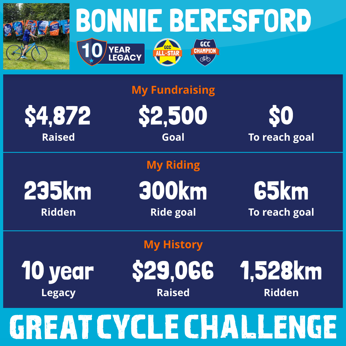 243 km Ridden$4,872 Raised2025