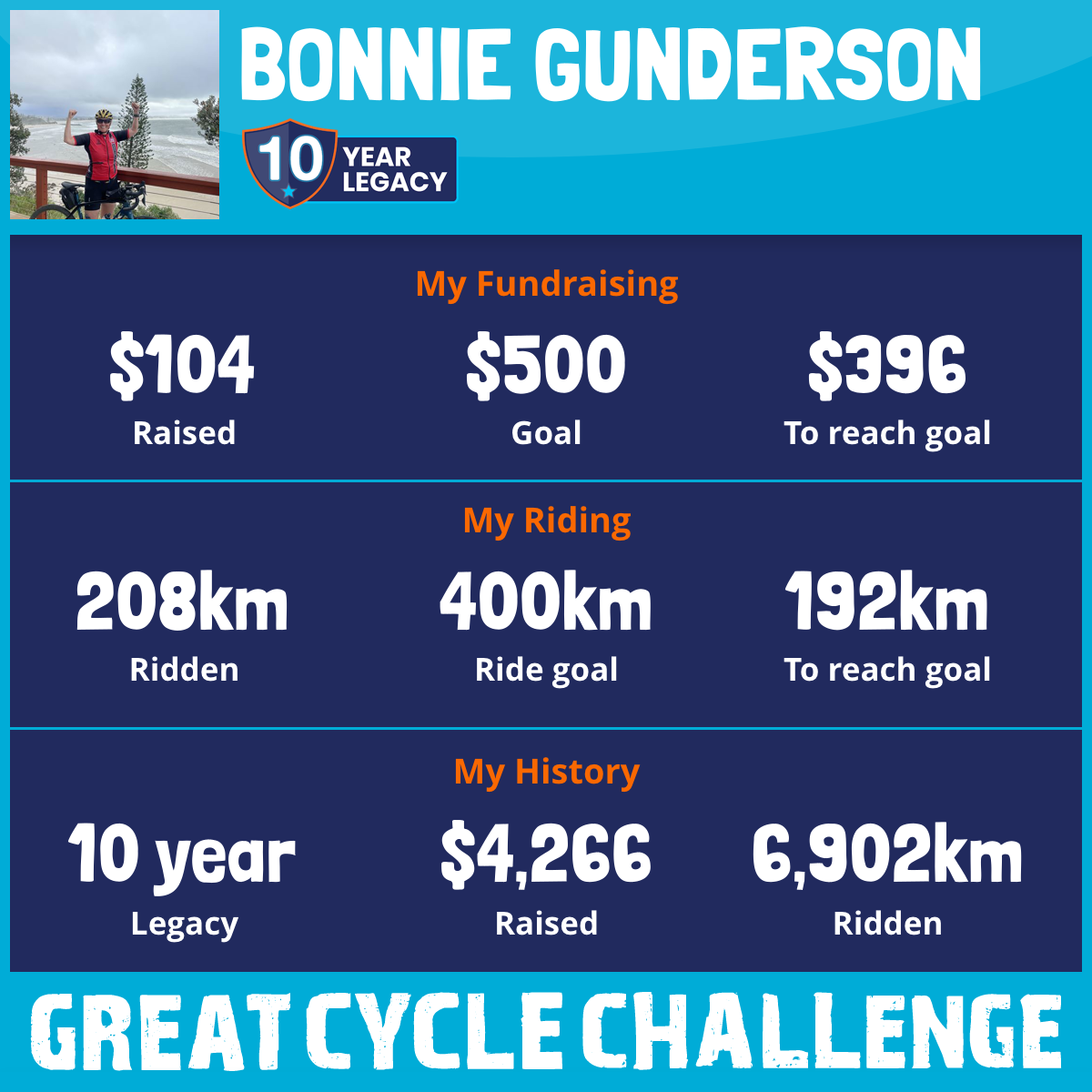 I am riding 400 km for my loved one, Patcee, Erin, Tegan, Connie. Please sponsor me and support my challenge to fight kids' cancer and save little lives.