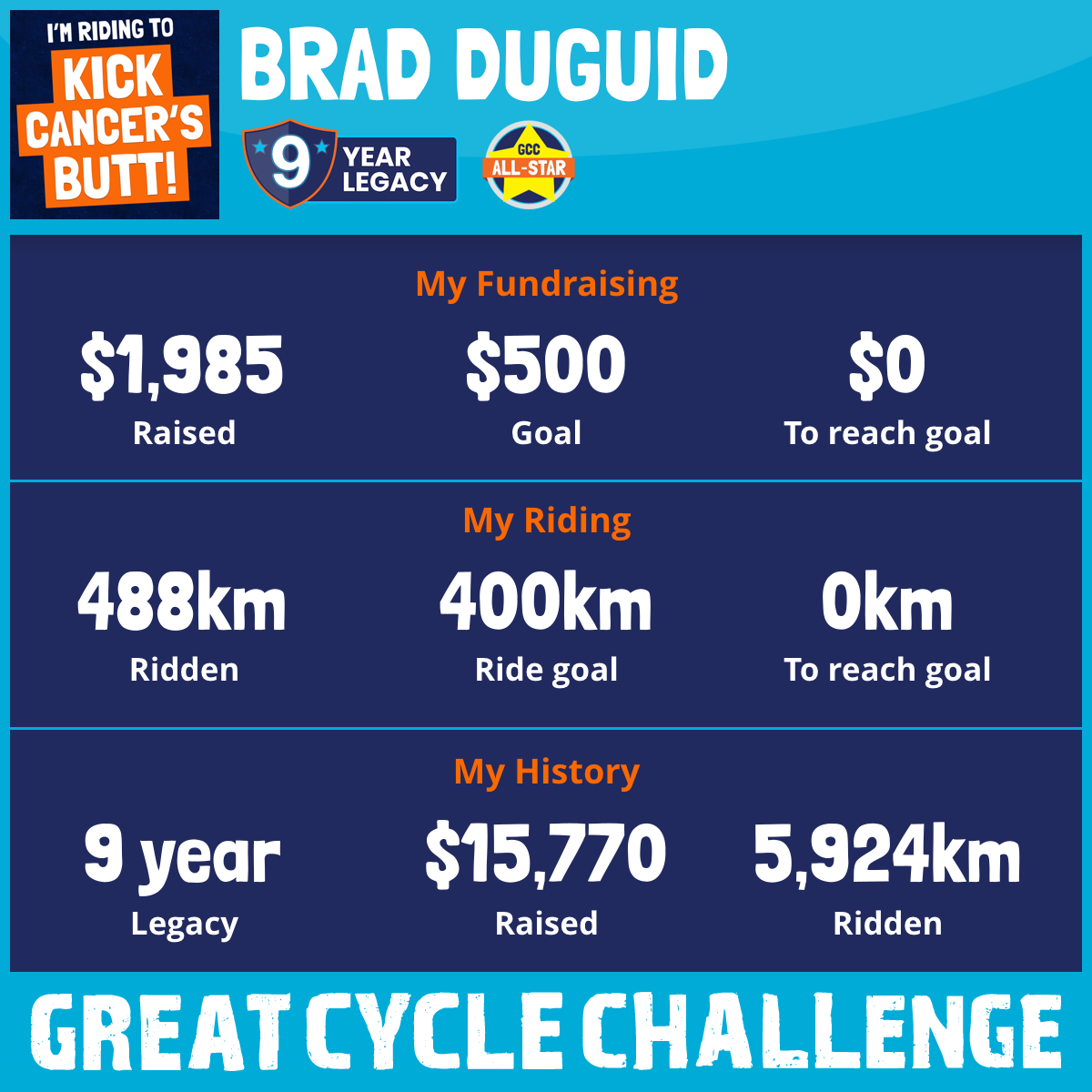 807 km Ridden$2,115 Raised2025