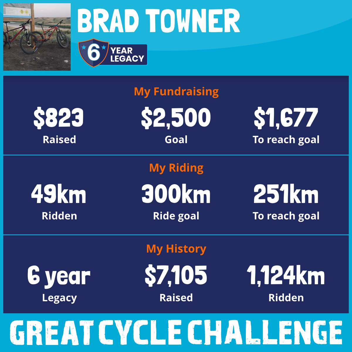 145 km Ridden$1,128 Raised2023
