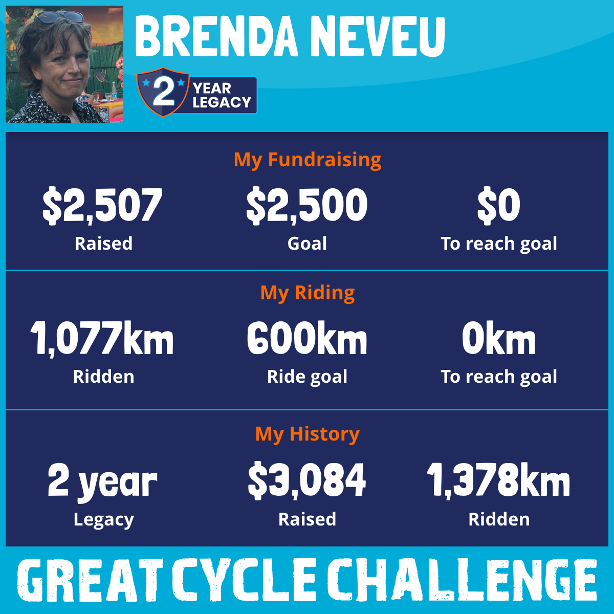 1,566 km Ridden$2,507 Raised2025