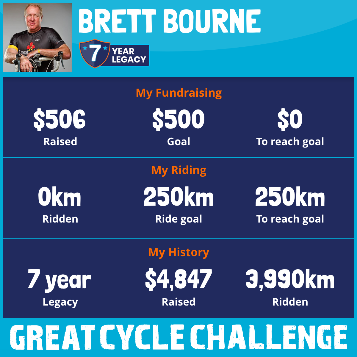 1,657 km Ridden$1,451 Raised2020