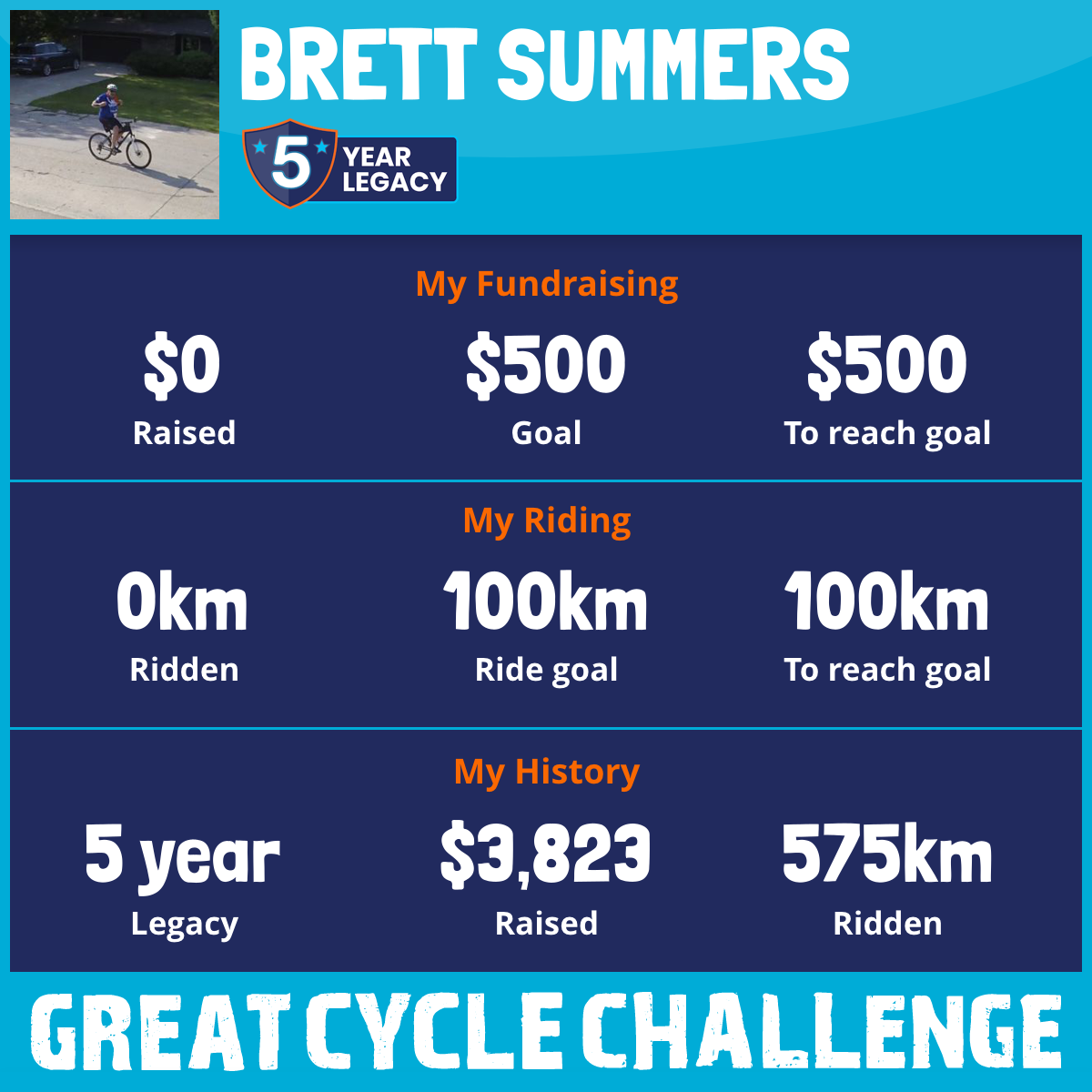I am riding 100 km in memory of D’Arcy. Please sponsor me and support my challenge to fight kids' cancer and save little lives.