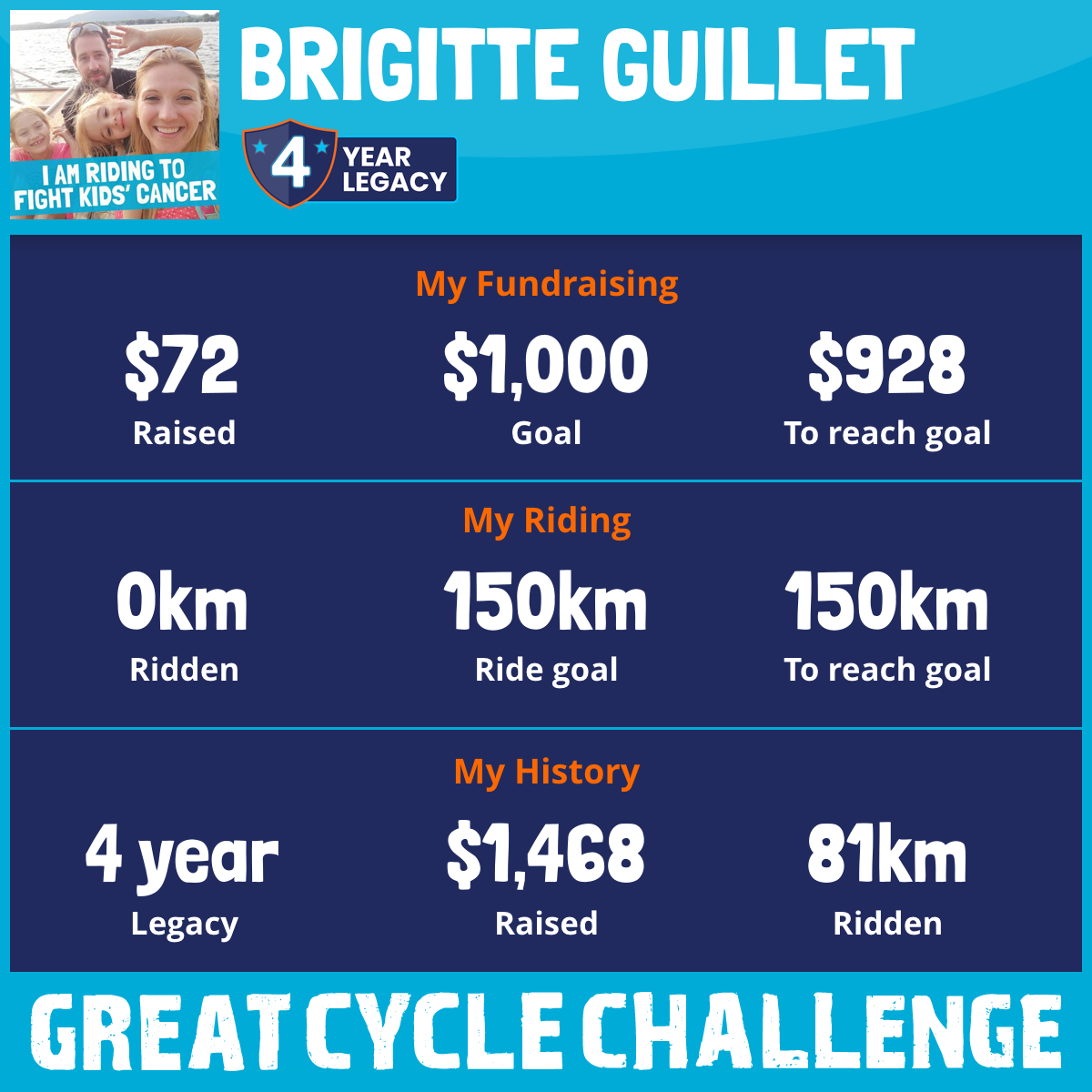 Durant le mois d'août, je suis inscrite au "Great Cycle Challenge" pour amasser des fonds pour la recherche sur le cancer chez les enfants.