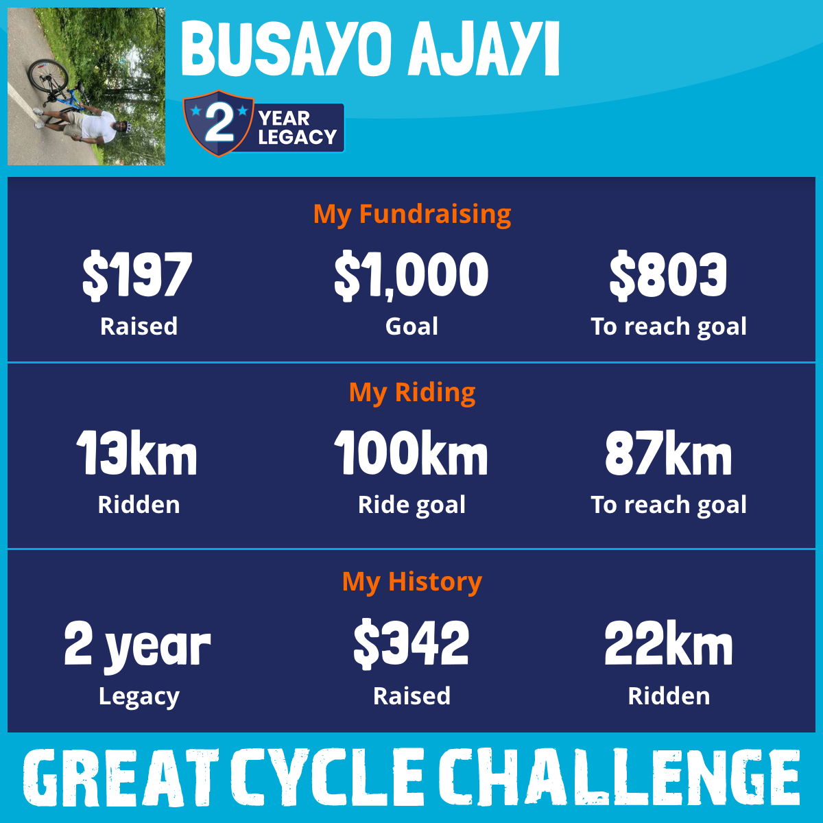 13 km Ridden$197 Raised2025