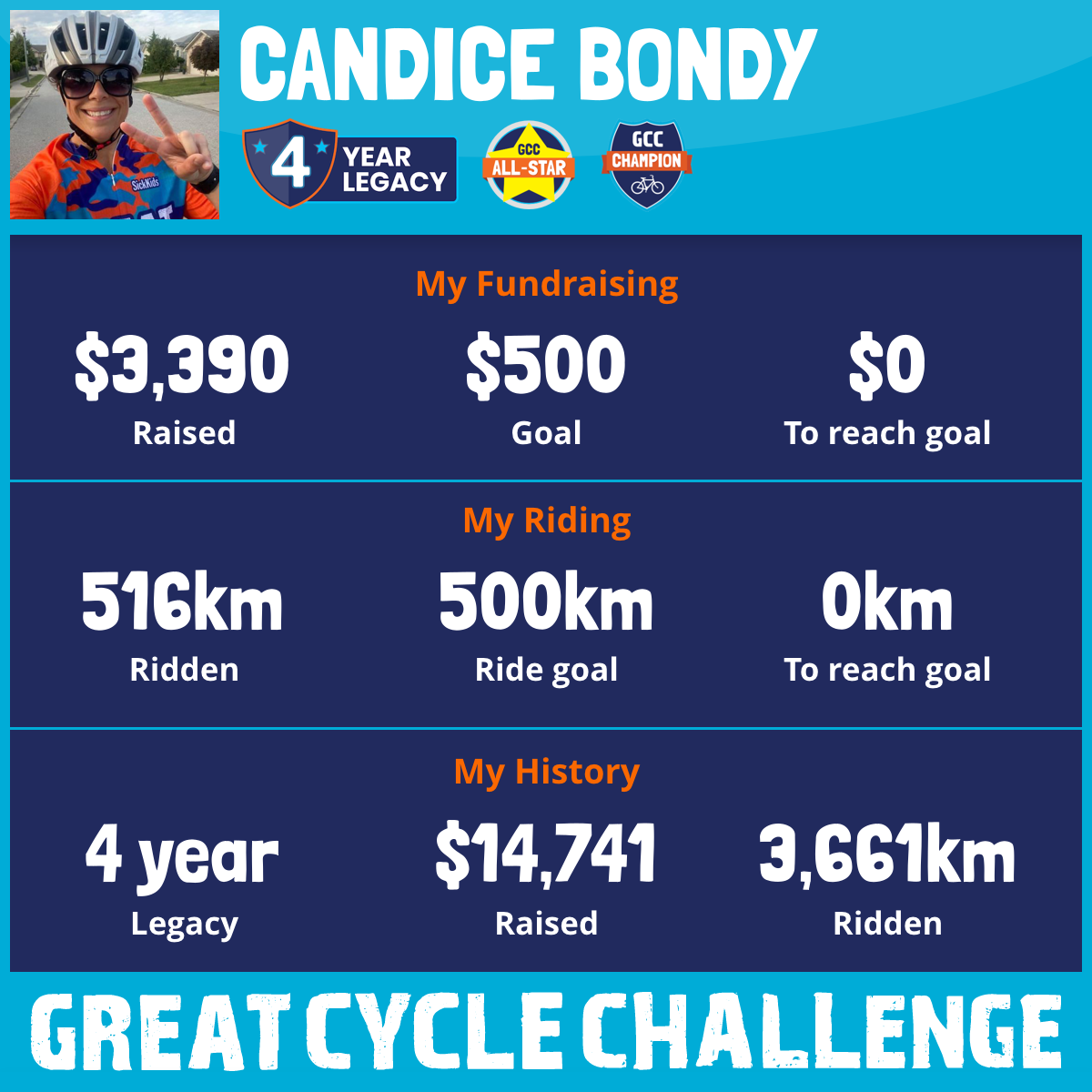 1,000 km Ridden$4,166 Raised2021