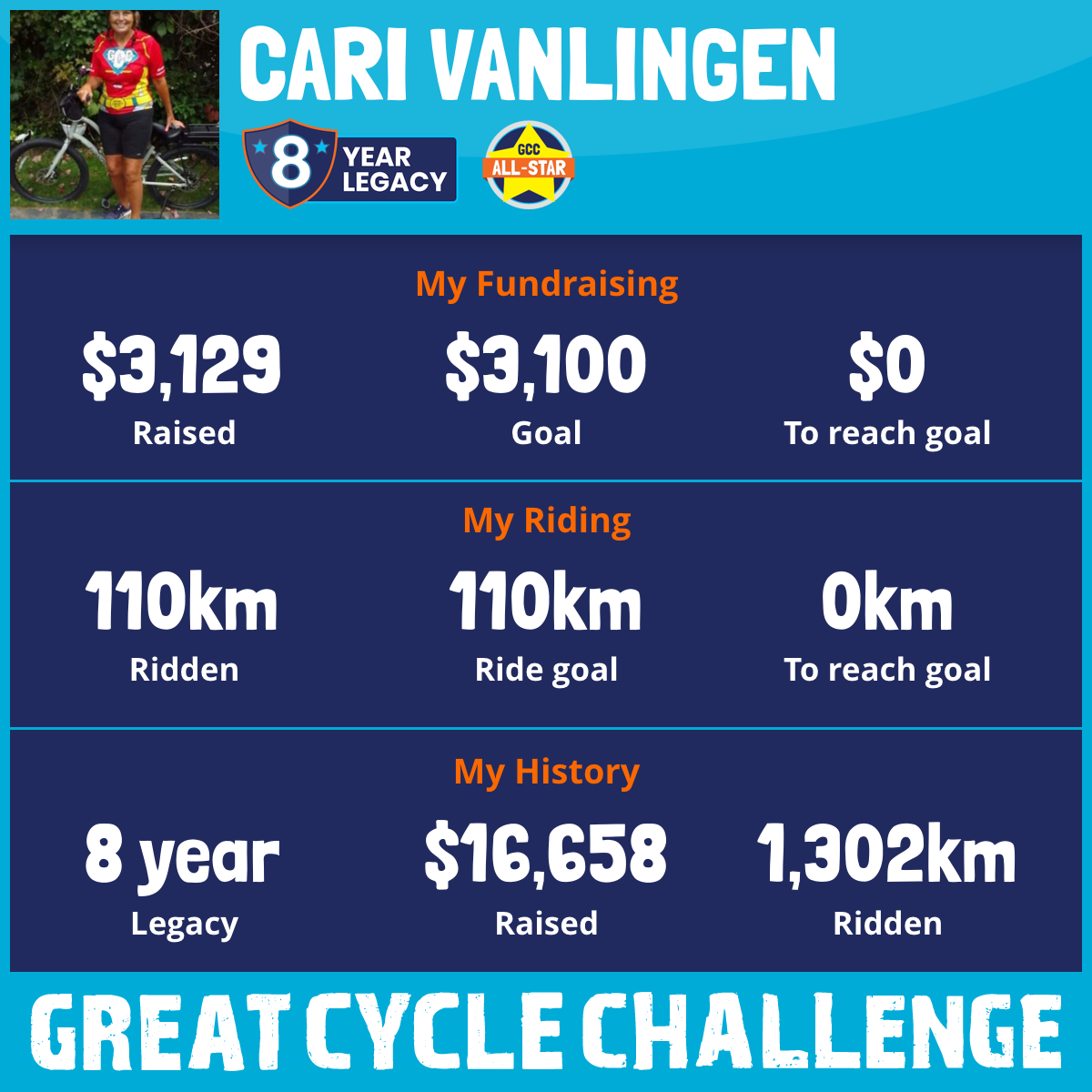 This August, I am taking part in the Great Cycle Challenge to fight kids' cancer! This is the 16th year anniversary of when our daughter was diagnosed with cancer and went through that horrific ordeal. If she could go through that I can certainly go through riding 150 km to help raise funds for childhood cancer.