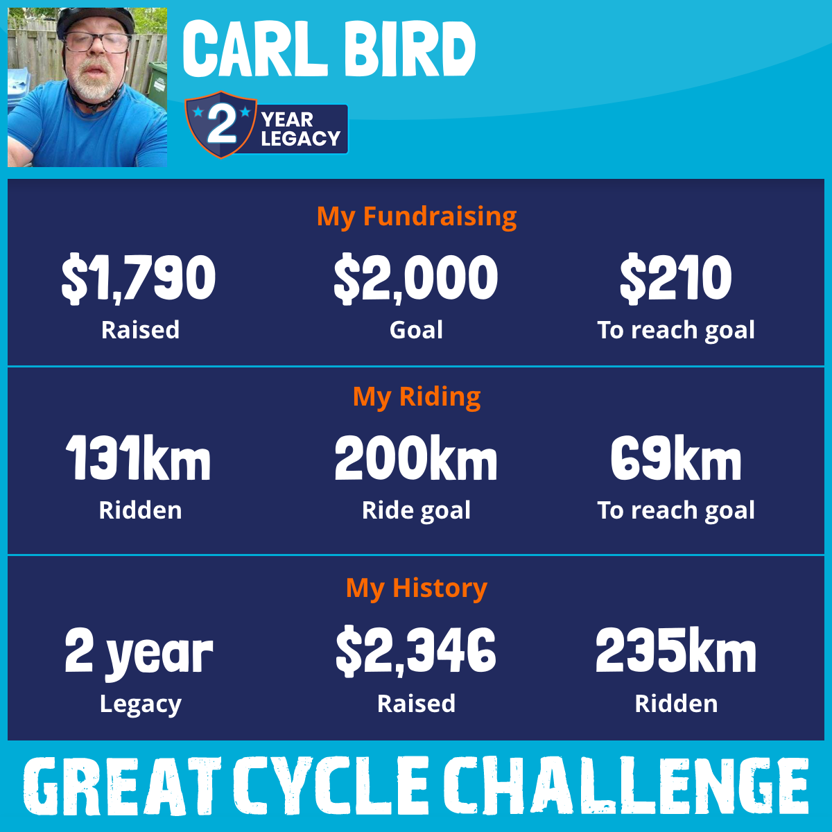 199 km Ridden$2,008 Raised2025