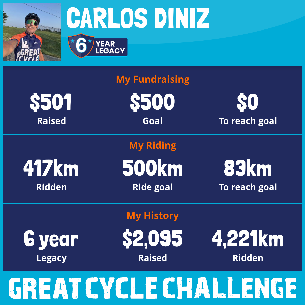 I am riding 500 km for Claudia Carvalho. Please sponsor me and support my challenge to fight kids' cancer and save little lives.