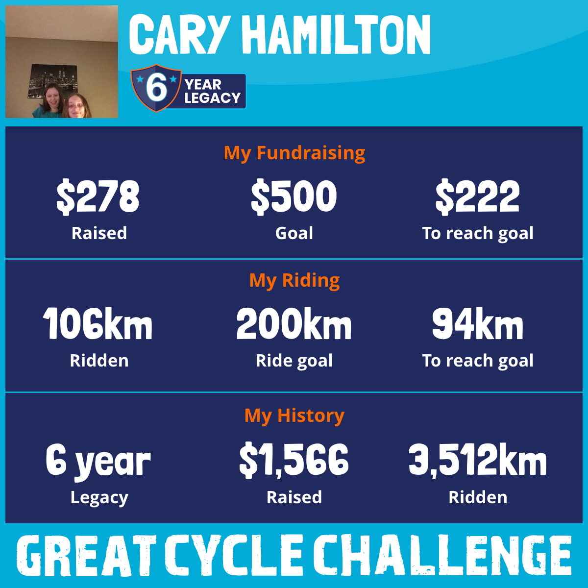 1,766 km Ridden$508 Raised2018