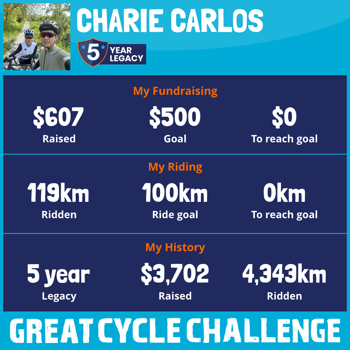 1,118 km Ridden$876 Raised2023