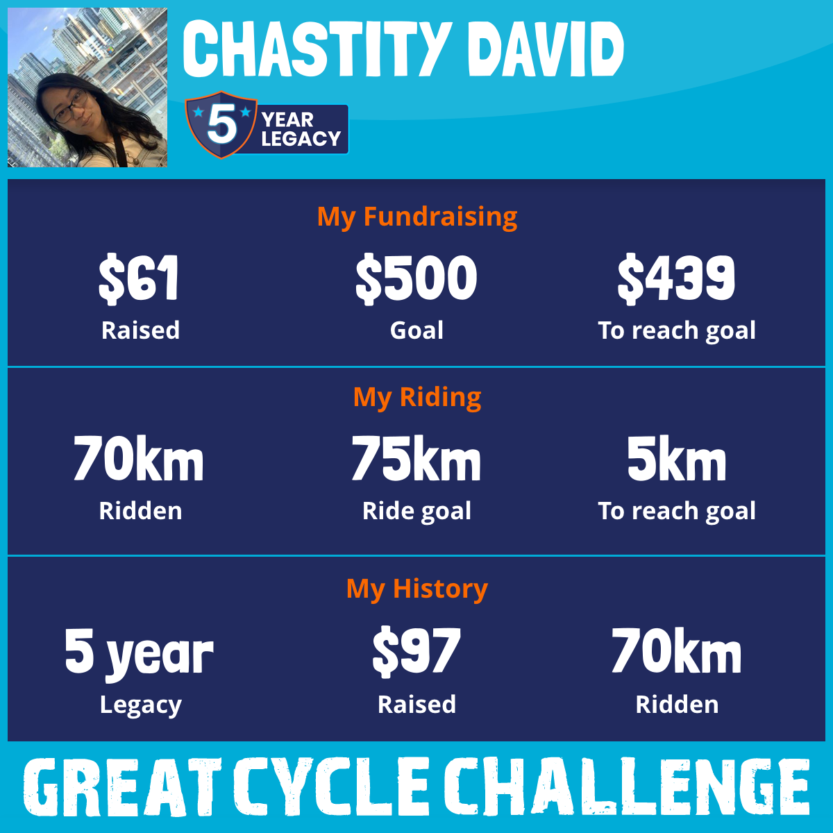 70 km Ridden$61 Raised2025