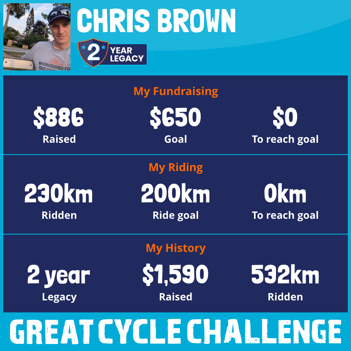230 km Ridden$886 Raised2025
