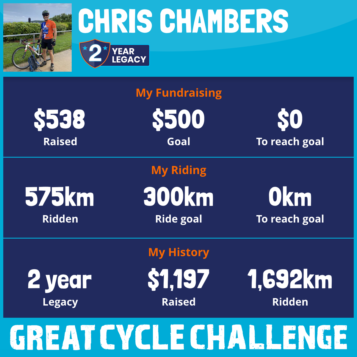 1,621 km Ridden$538 Raised2025