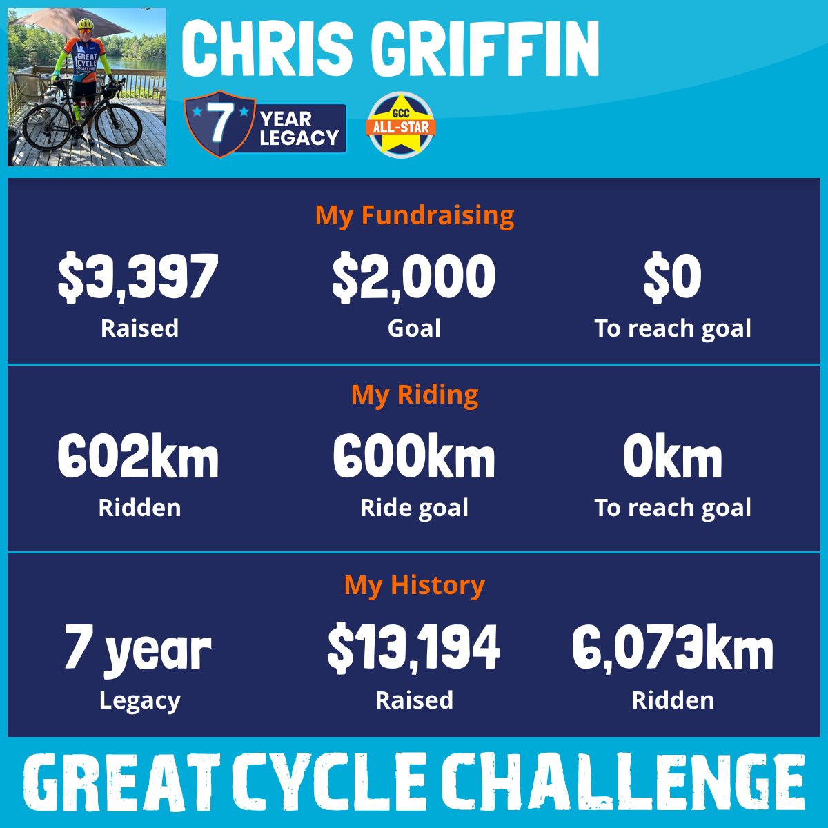 852 km Ridden$3,397 Raised2025