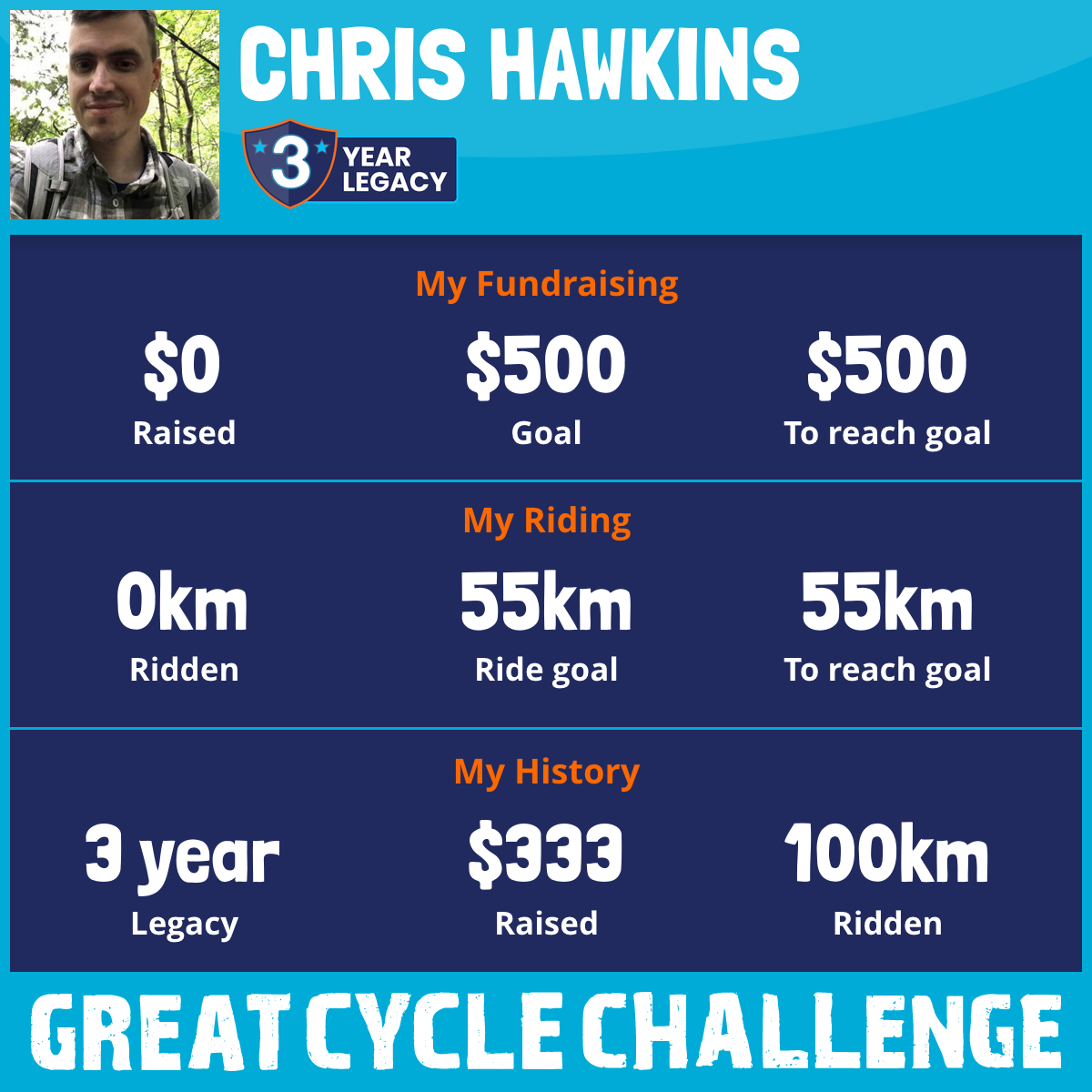 I’m a disabled cyclist and entrepreneur. I haven’t been able to ride a bicycle the last 10 years, having previously been an avid cyclist. I’ll be doing this challenge from home on my NordicTrak, with dreams of getting back out on a bike soon.