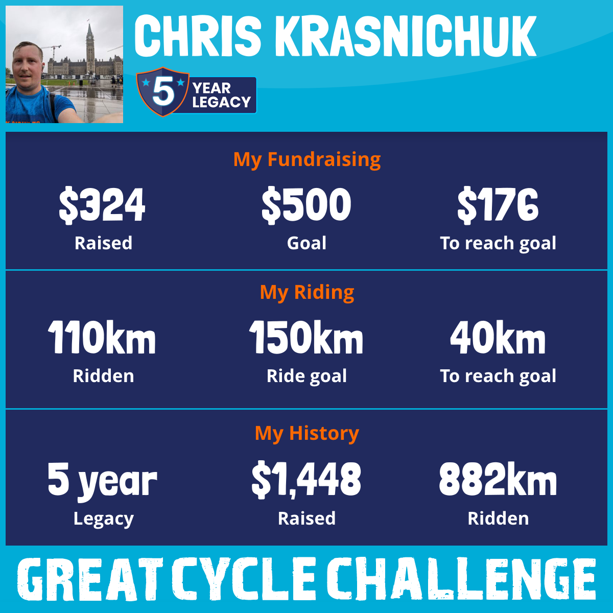So I am raising funds through my challenge to help these kids and support SickKids Foundation to allow them to continue their work in developing treatments and finding a cure for childhood cancer.