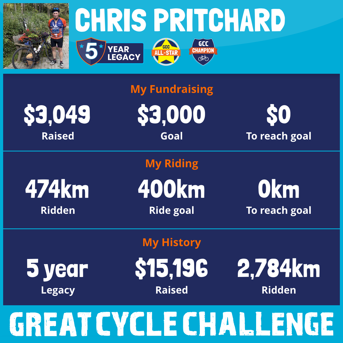 474 km Ridden$3,049 Raised2025