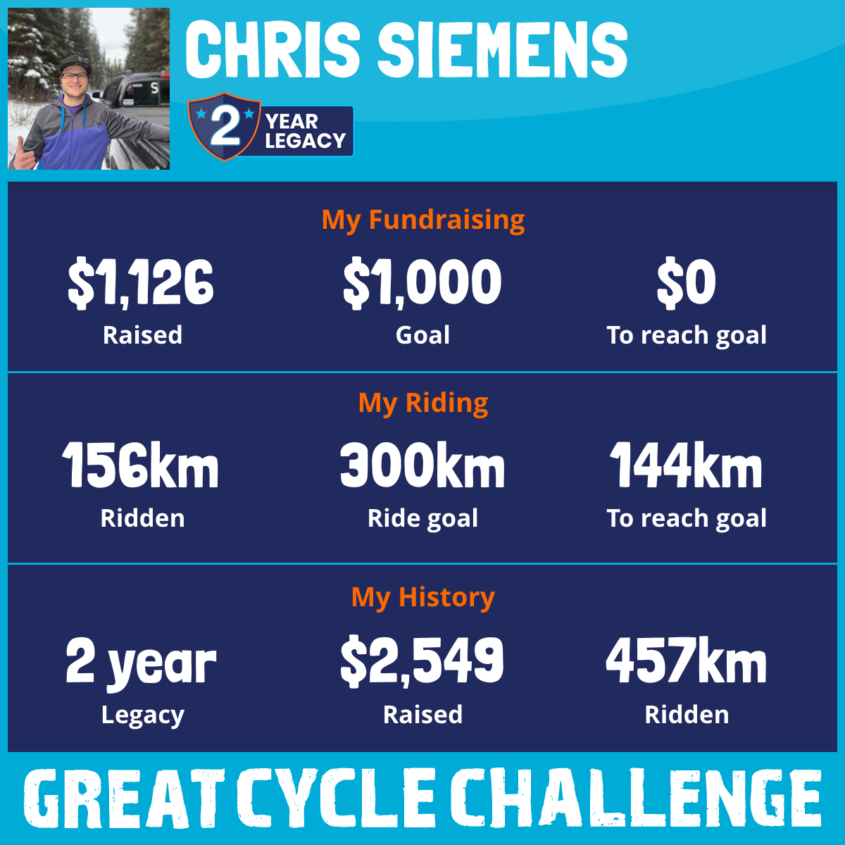 156 km Ridden$1,126 Raised2025