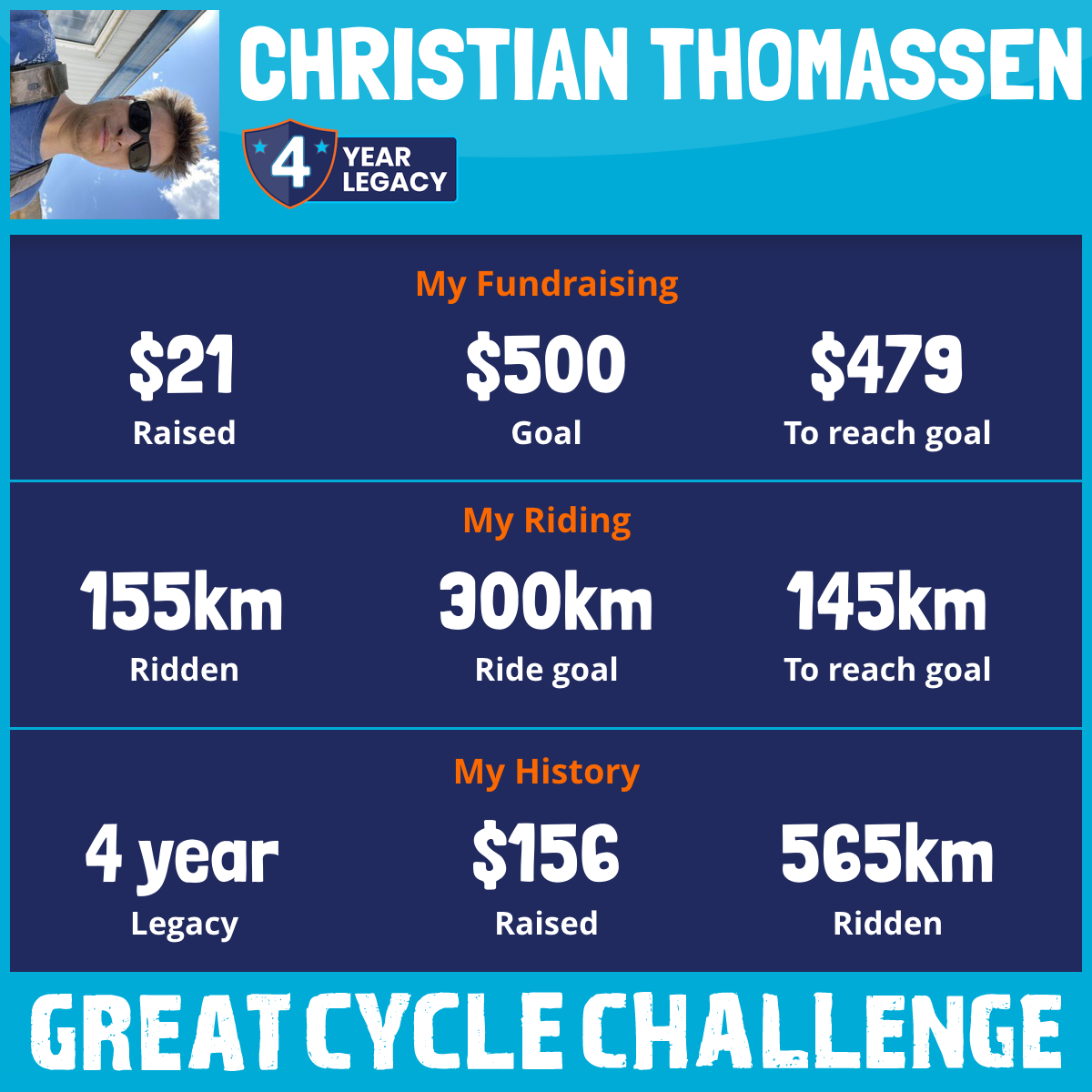 I am riding 300 km for my dad, Christian Thomassen. Please sponsor me and support my challenge to fight kids' cancer and save little lives.