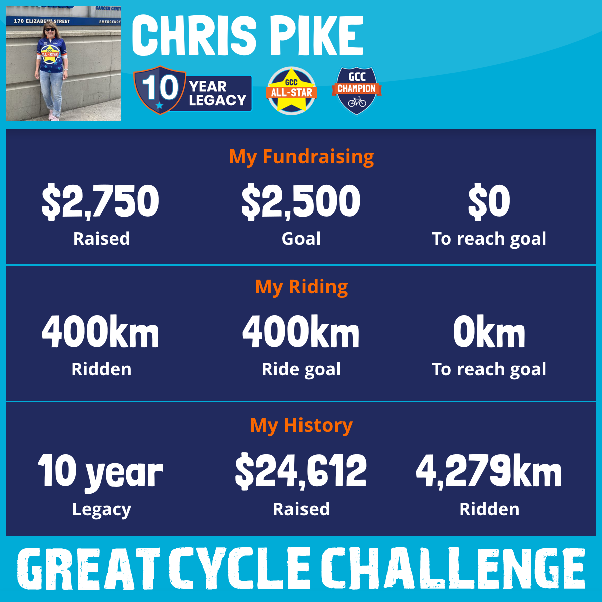 400 km Ridden$2,750 Raised2025