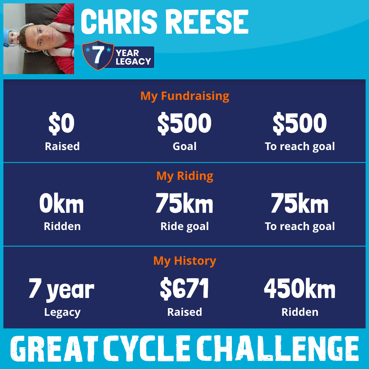 I am riding 75 km for my dad, Wilbert Reese. Please sponsor me and support my challenge to fight kids' cancer and save little lives.