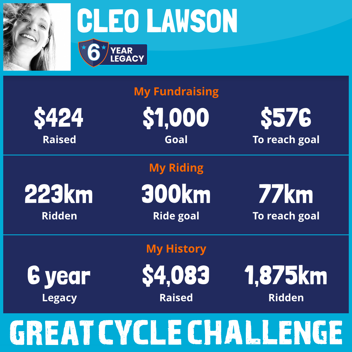 This August, I am taking part in the Great Cycle Challenge to fight kids' cancer!